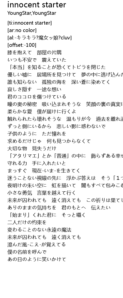 | [02:35.11] | まっすぐ 現在-いま-を生きてく |