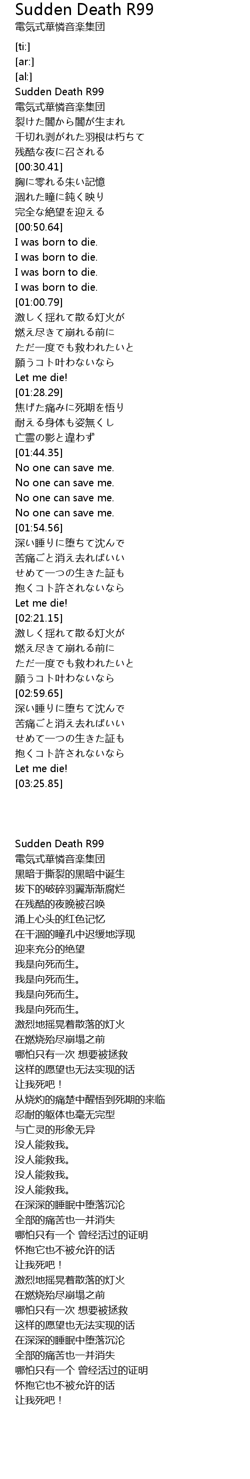 | [03:19.93] | 让我死吧! |