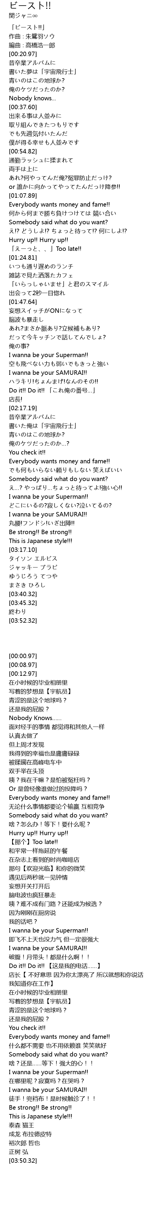 | [00:00.97] | 「ビースト!!」 |