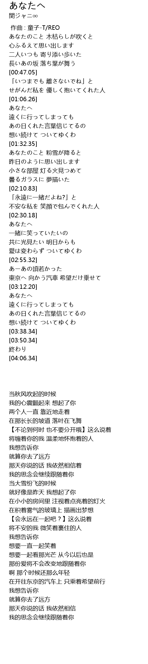 | [00:16.18] | あなたのこと 木枯らしが吹くと |
