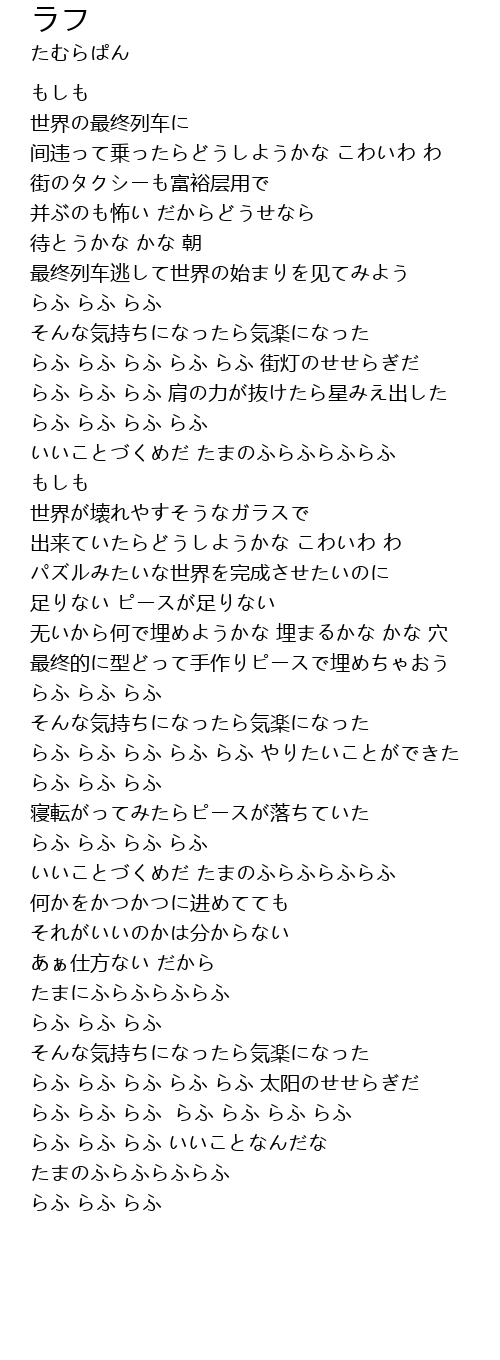 | [03:45.22] | らふ らふ らふ いいことなんだな たまのふらふらふらふ |