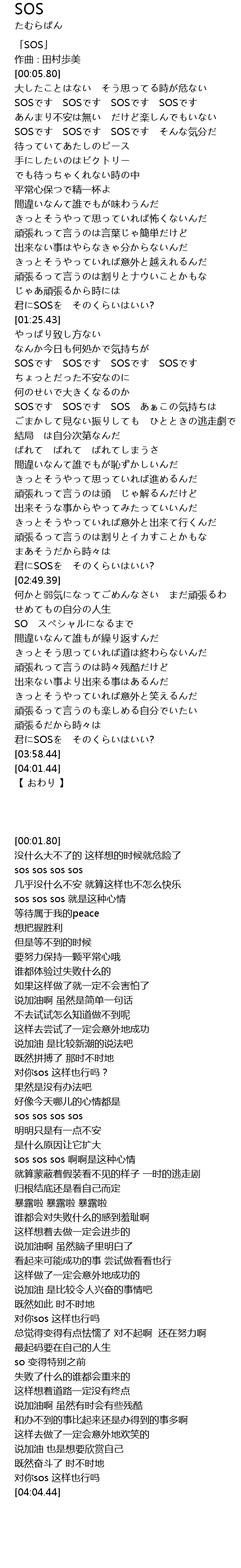 | [00:01.80] | 「SOS」 |