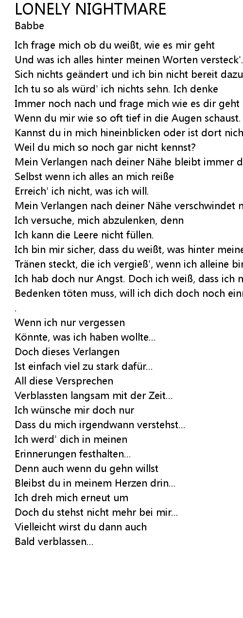 | [00:35.72] | Kannst du in mich hineinblicken oder ist dort nichts zu sehn |