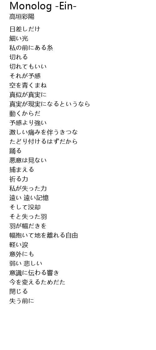 | 歌曲 | Monolog -Ein- |