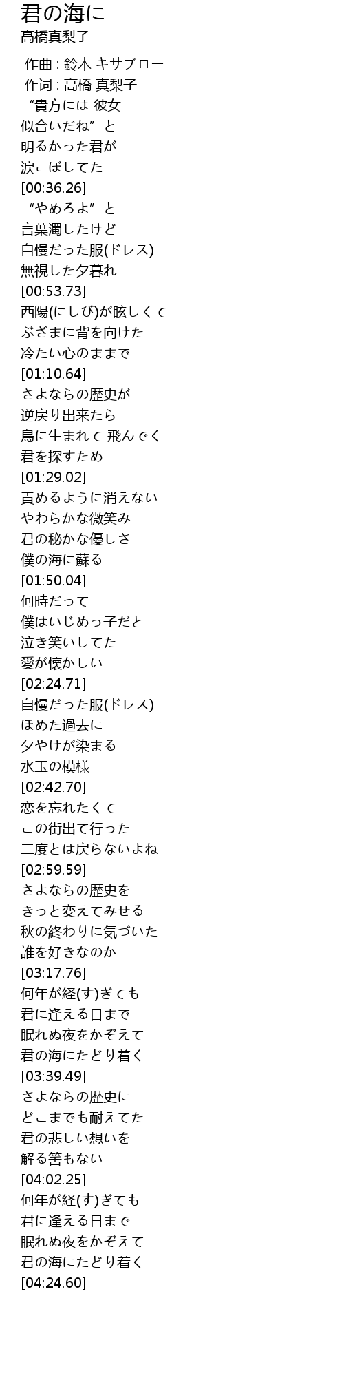 | [04:16.66] | 君の海にたどり着く |