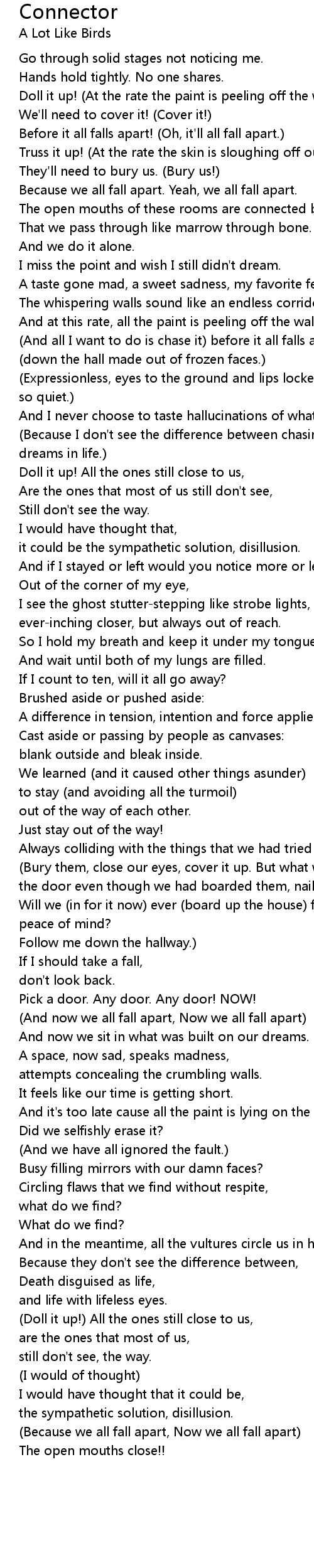 (And now we all fall apart, Now we all fall apart)