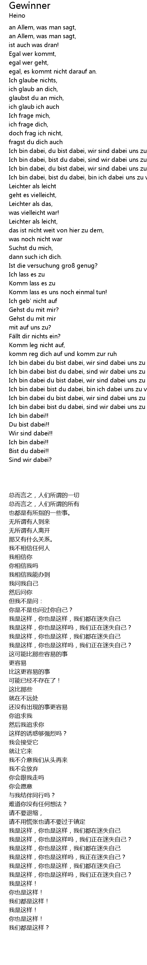 | [00:59.000] | Ich bin dabei, bist du dabei, sind wir dabei uns zu verlier'n |