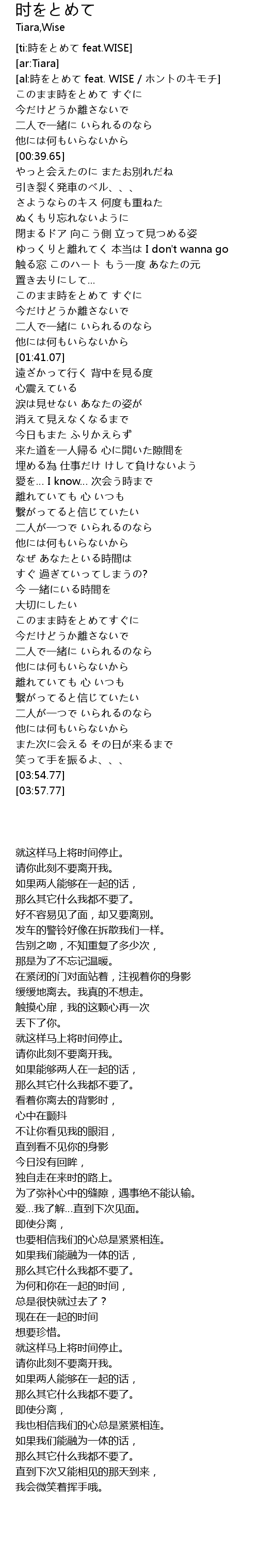 | [al:時をとめて feat. WISE / ホントのキモチ] | |