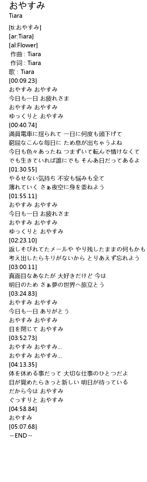 | [00:16.35] | おやすみ おやすみ |
