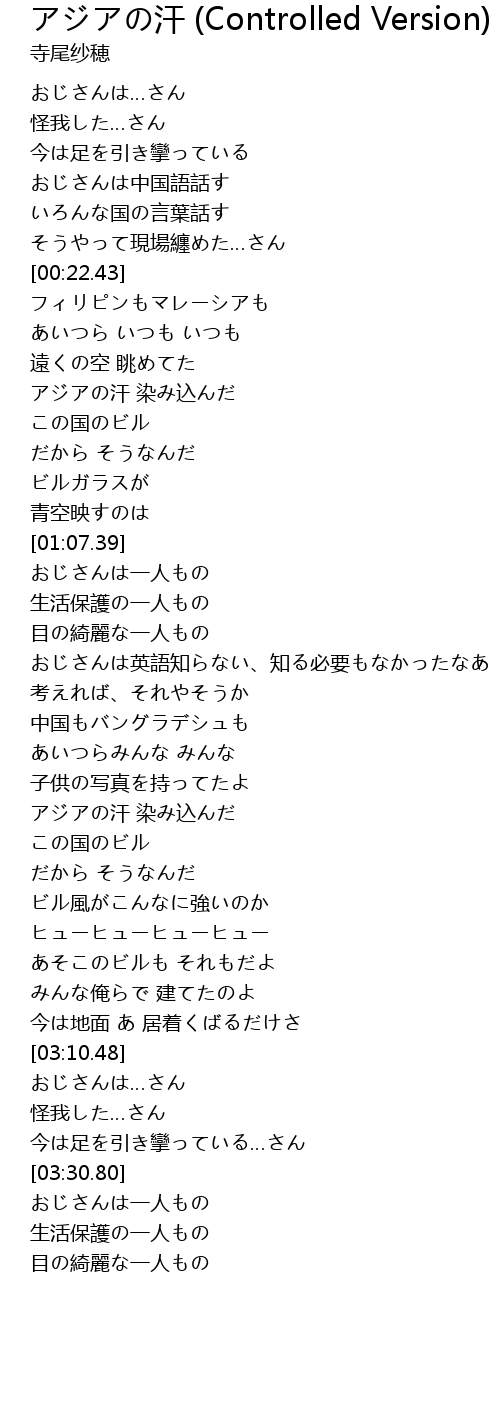 | [01:32.91] | おじさんは英語知らない、知る必要もなかったなあ |