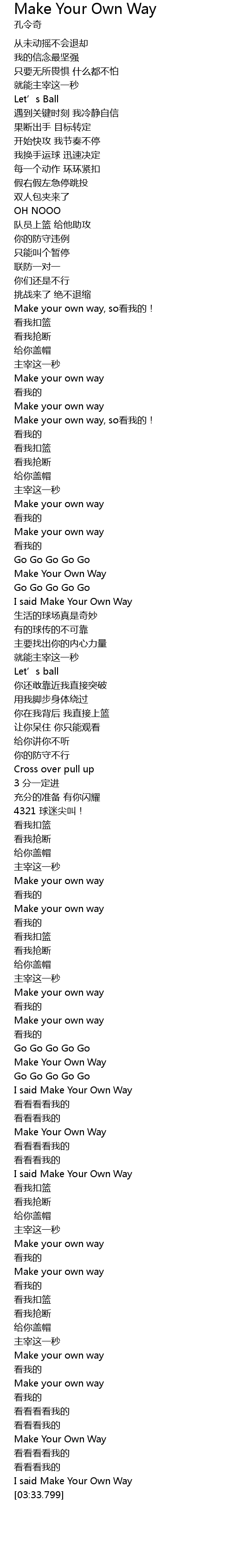 | [01:35.610] | Make your own way, so kàn wǒ de! |