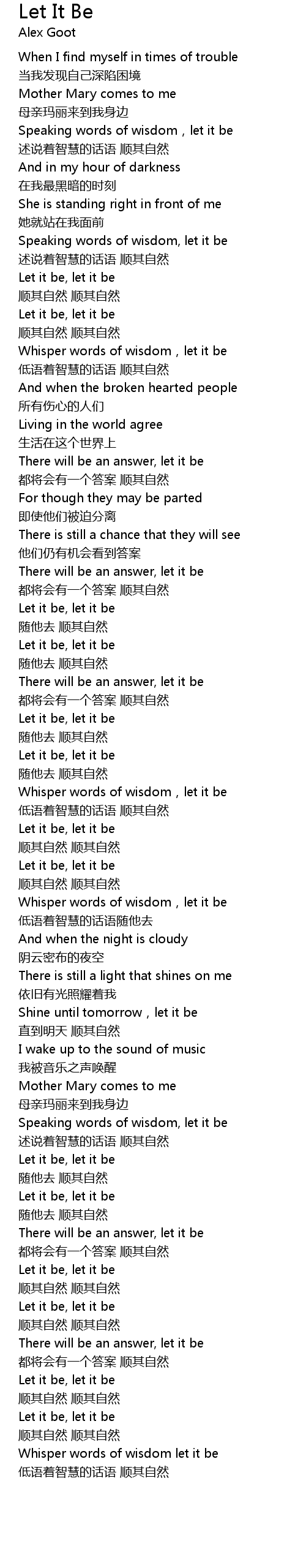 | Speaking words of wisdom,let it be | |