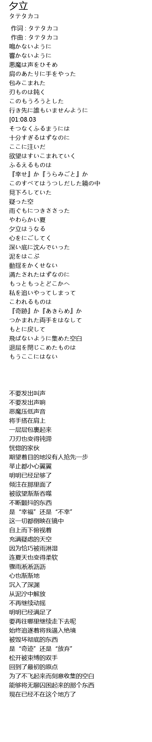 | [00:00.000] | 作词 : タテタカコ |