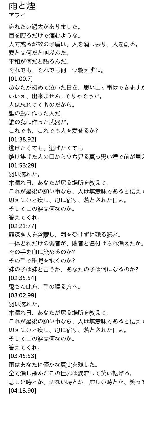 | [03:45.54] | 雨はあなたに僅かな真実を残した。 |