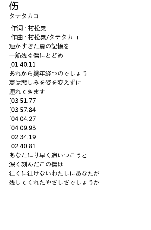 | [00:01.000] | 作曲 : 村松晃/タテタカコ |
