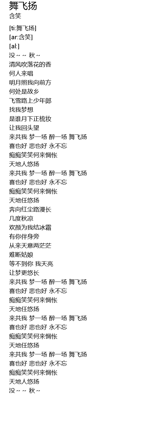| [01:32:02] | 来共我 梦一场 醉一场 舞飞扬 |