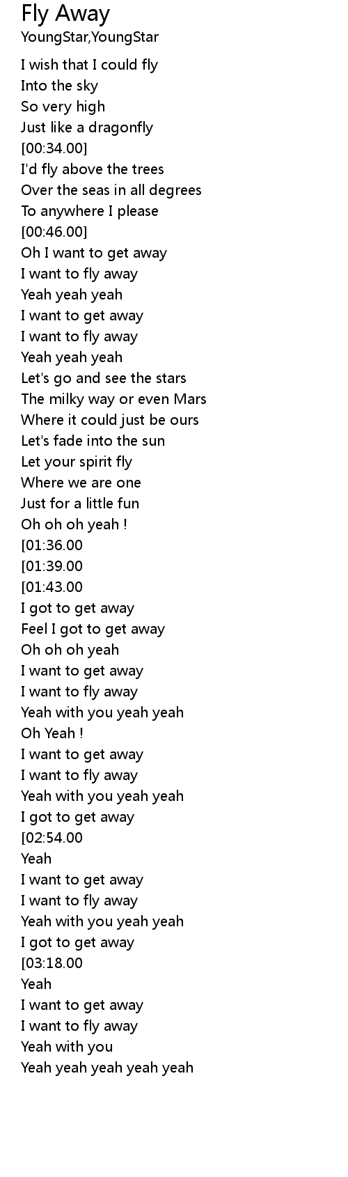 | [03:20.00][03:18.00][03:14.00][03:12.00] | I want to get away |