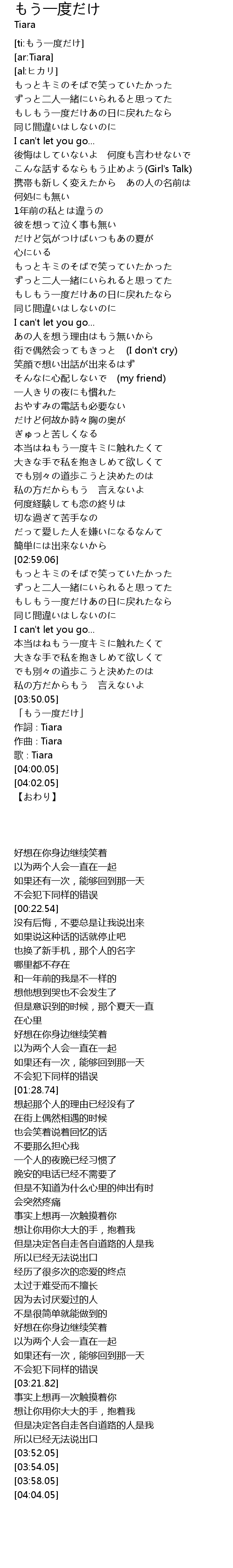 | [03:54.05] | 作詞∶Tiara |