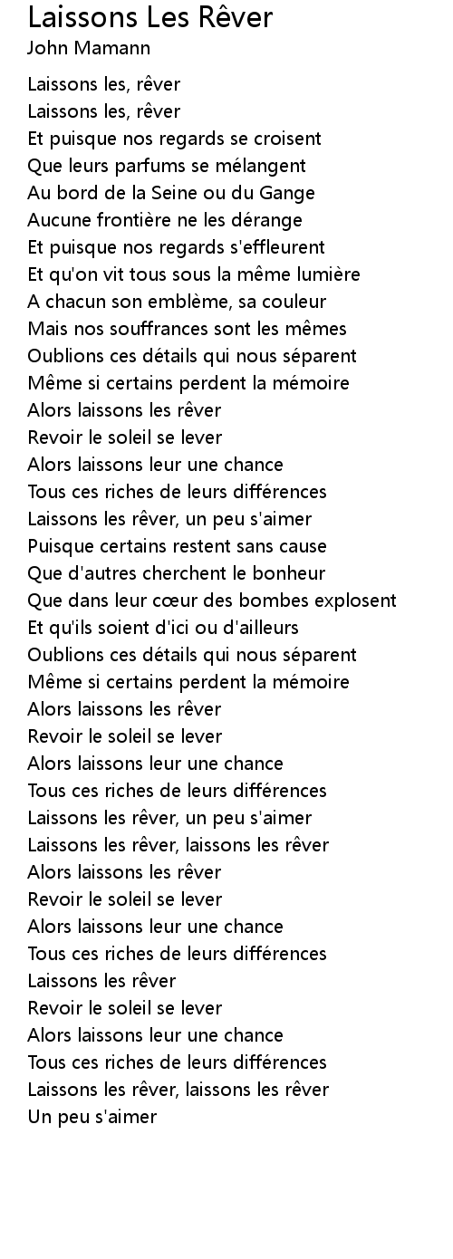 | [02:23.94] | Laissons les rêver, laissons les rêver |
