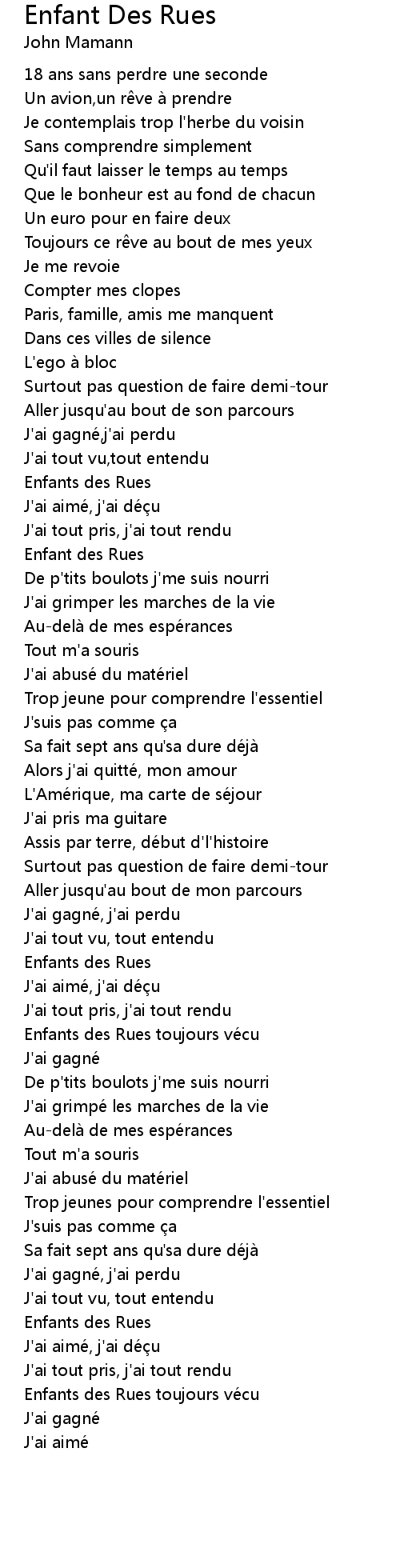 | [02:57.94] | Enfants des Rues toujours vécu |