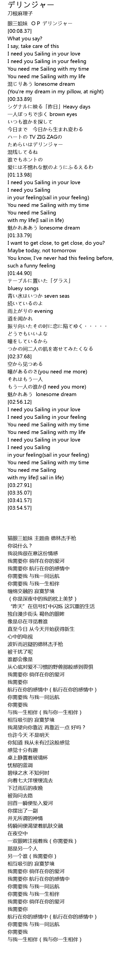 | [03:18.56] | in your feeling(sail in your feeling) |