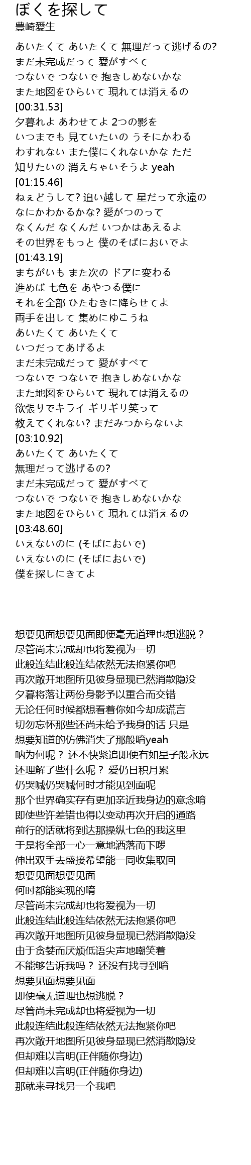| [04:01.33] | 僕を探しにきてよ |