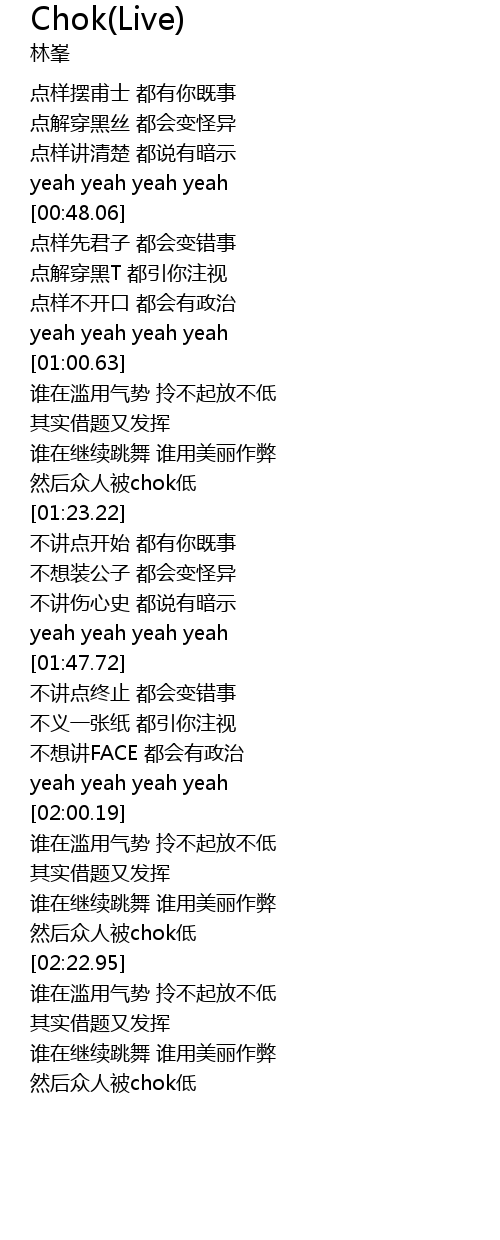 | [02:00.61] | 谁在滥用气势 拎不起放不低 |