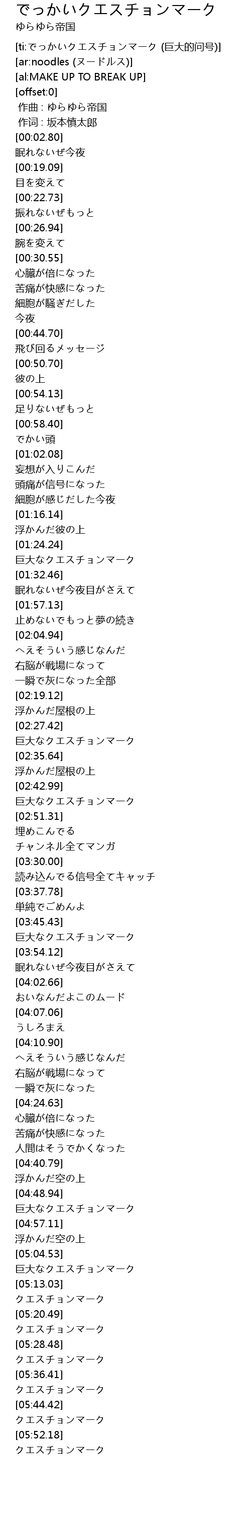 | [ti:でっかいクエスチョンマーク (巨大的问号)] | |