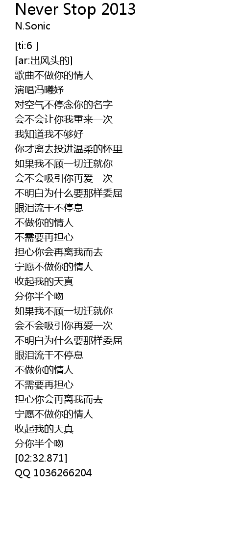 | [02:00.74] | 不做你的情人 |