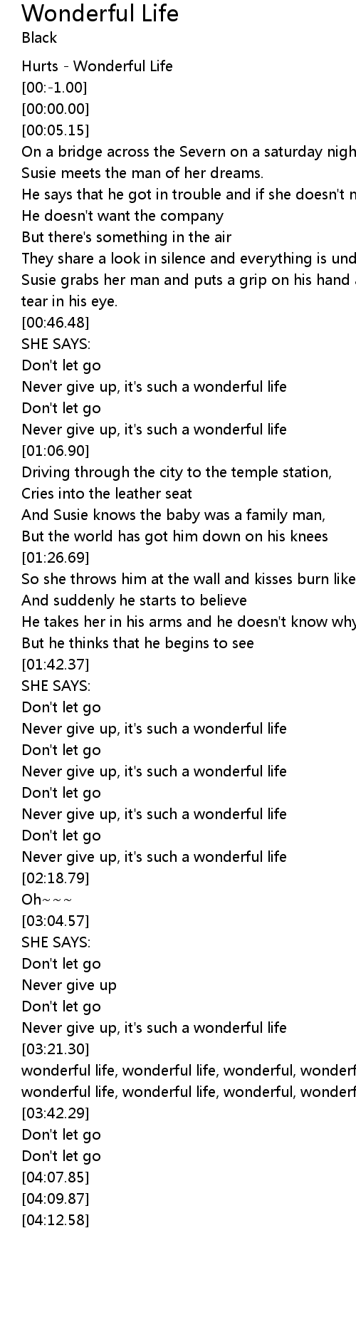 | [03:22.43] | wonderful life, wonderful life, wonderful, wonderful, wonderful life |