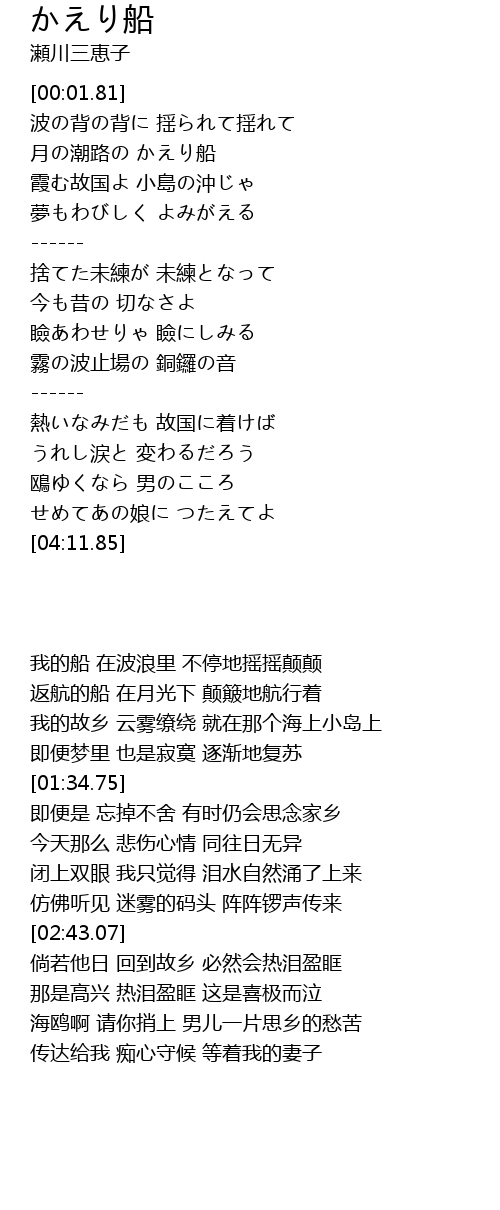 | [00:53.08] | 返航的船 在月光下 颠簸地航行着 |