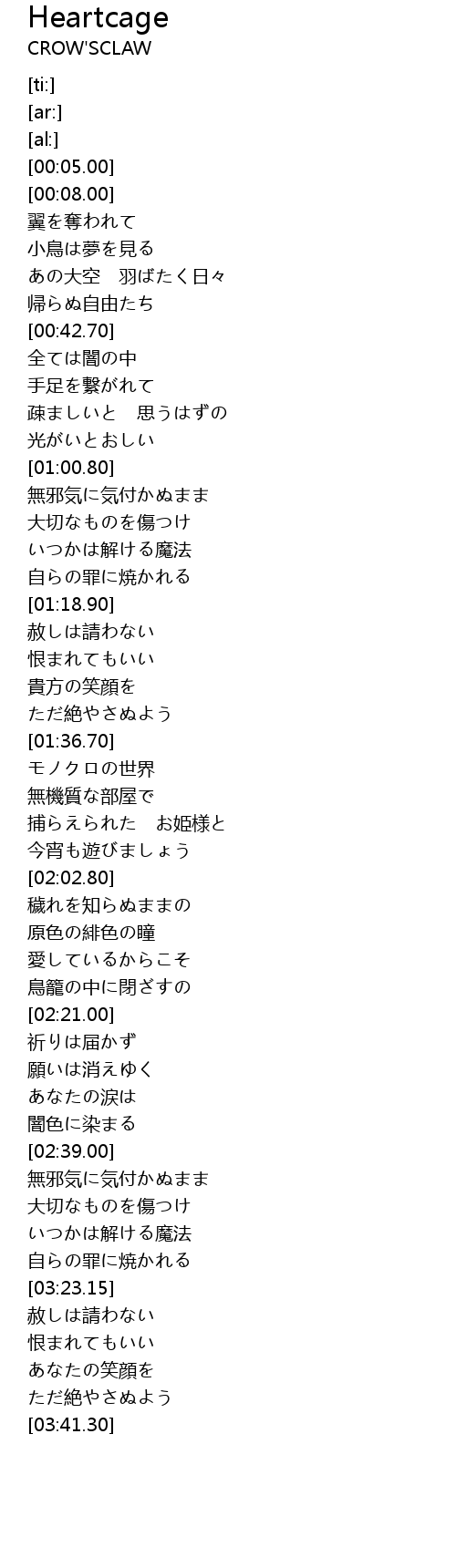 | [02:15.75] | 鳥籠の中に閉ざすの |