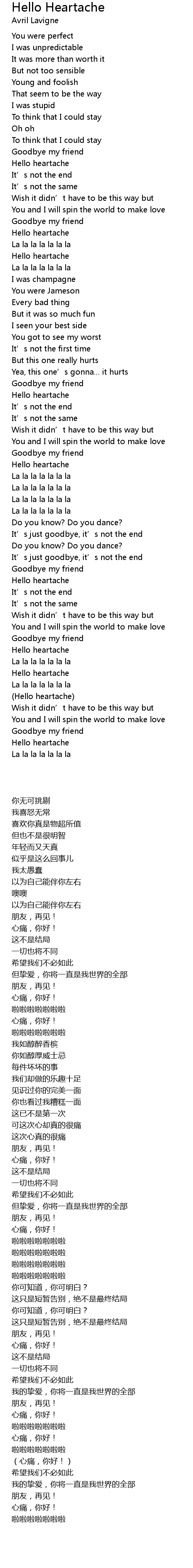 | [02:10.789] | Hello heartache |