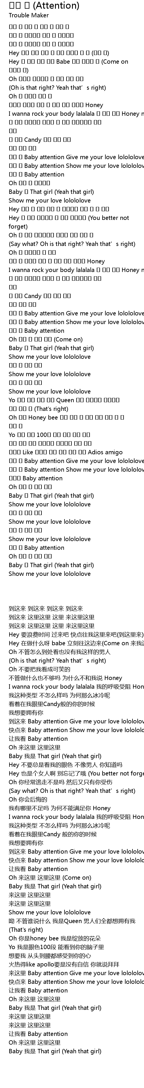 | [02:43.790] | 이리 와 Baby attention Give me your love lolololove |