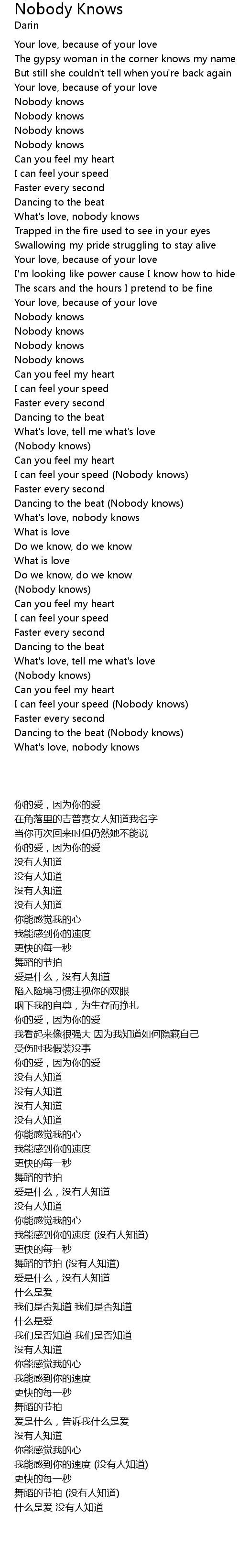 I can feel your speed (Nobody knows) |