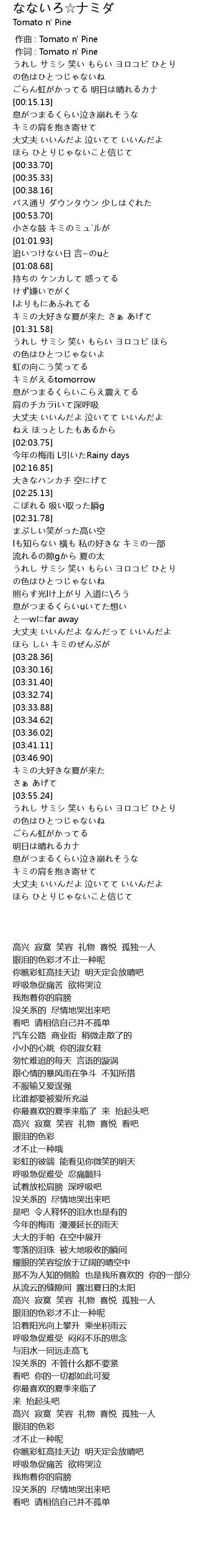 | [00:00.00] | 作曲 : Tomato n' Pine |