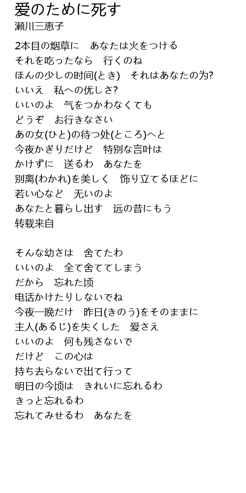明日の今顷は きれいに忘れるわ |