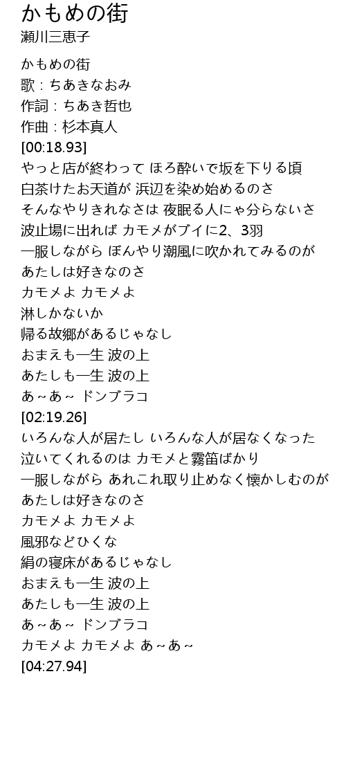 | [00:00.98] | かもめの街 |