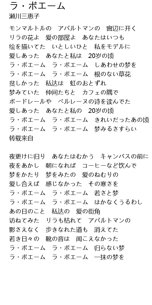ラ・ボエーム ラ・ボエーム きれいだったあの顷 |