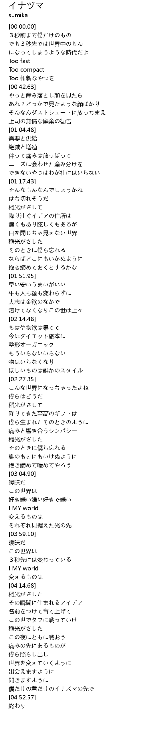 | [04:04.75] | I MY world |