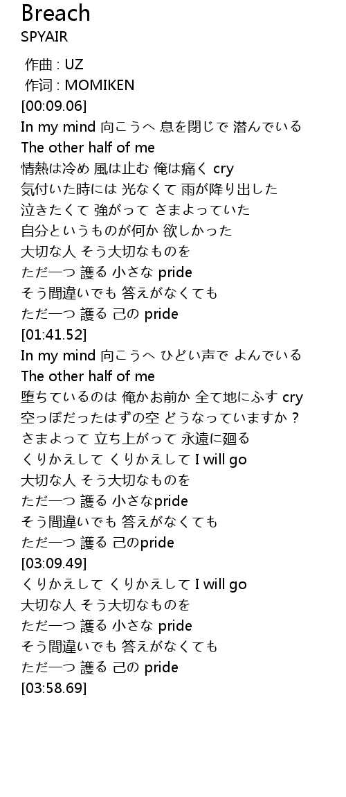 | [02:56.87] | ただ一つ 護る 己のpride |