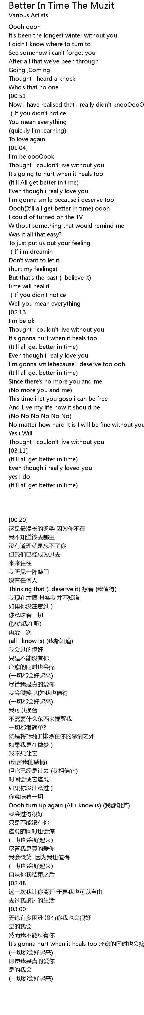 | [01:28] | Oooh(It'll all get better in time) oooh |