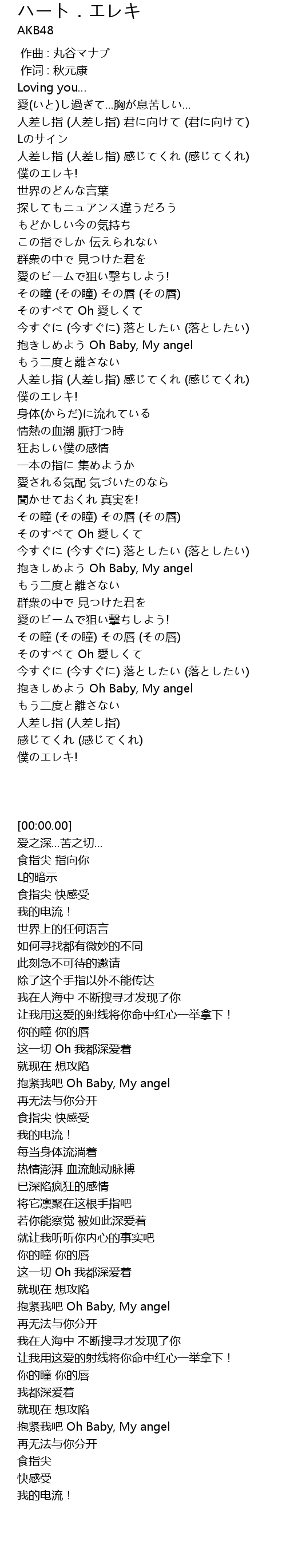 | [00:15.24] | 人差し指 (人差し指) 君に向けて (君に向けて) |
