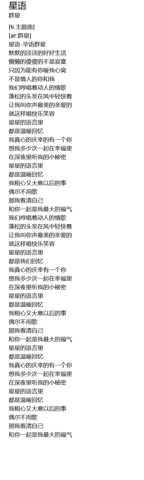| [03:41.536] | xīng xīng de yǔ yán lǐ |