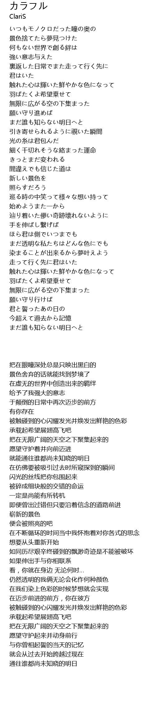 | [03:25.750] | 被触碰到的心闪耀发光并焕发出鲜艳的色彩 |