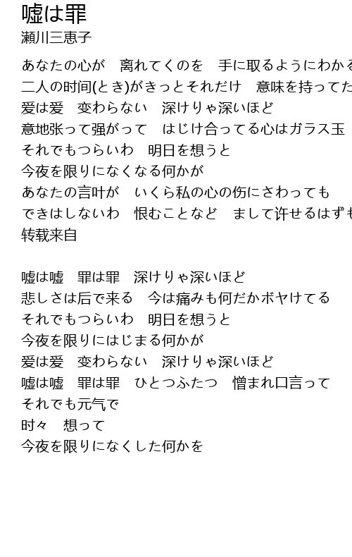 | 嘘は嘘 罪は罪 深けりゃ深いほど | |