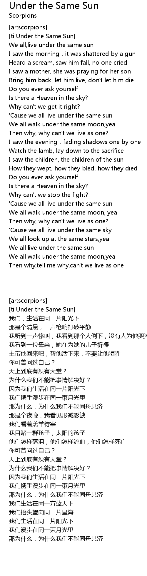 | [02:17.98] | We all live under the same sun |