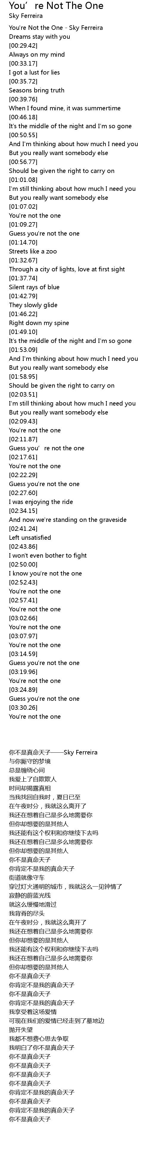 | [00:00.91] | You' re Not the One Sky Ferreira |