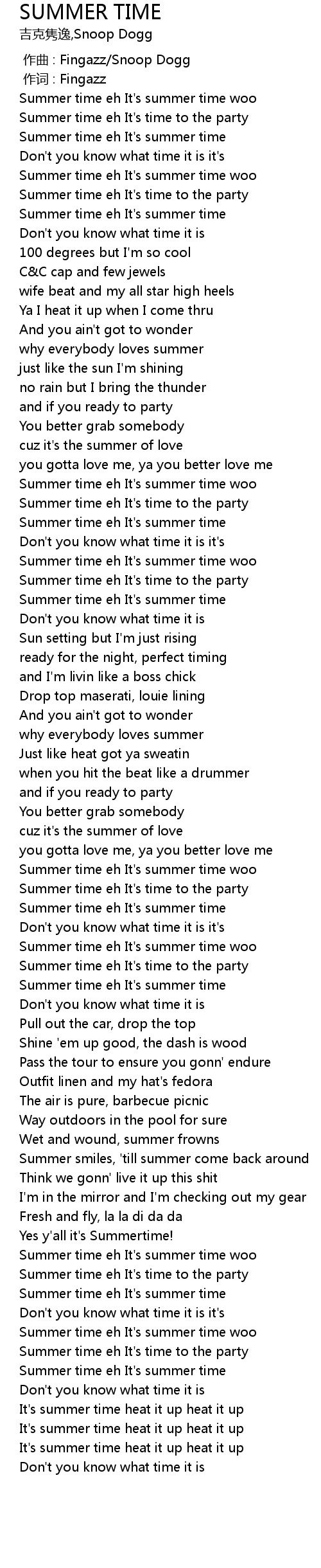 | [00:00.000] | Summer time eh It' s summer time woo |