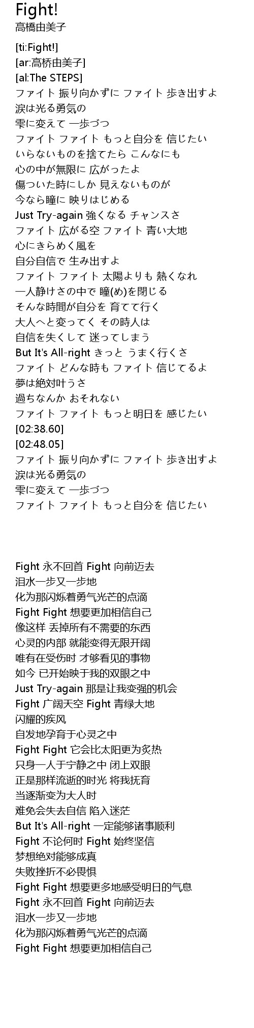 | [03:09.07] | Fight Fight 想要更加相信自己 |
